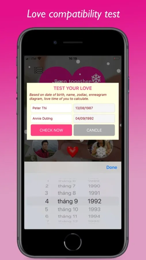 - Test your love by analyzing your name, date of birth, been together time, Zodiac and Enneagram diagram with AI (artificial intelligence).