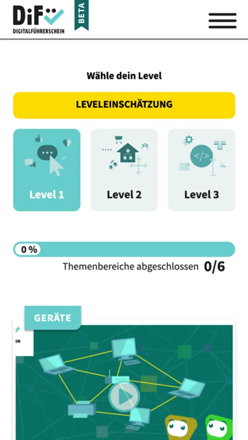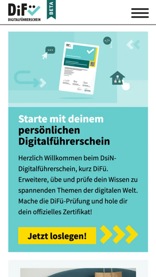 Herzlich Willkommen beim DsiN-Digitalführerschein, kurz DiFü. Erweitere, übe und prüfe dein Wissen zu spannenden Themen der digitalen Welt.