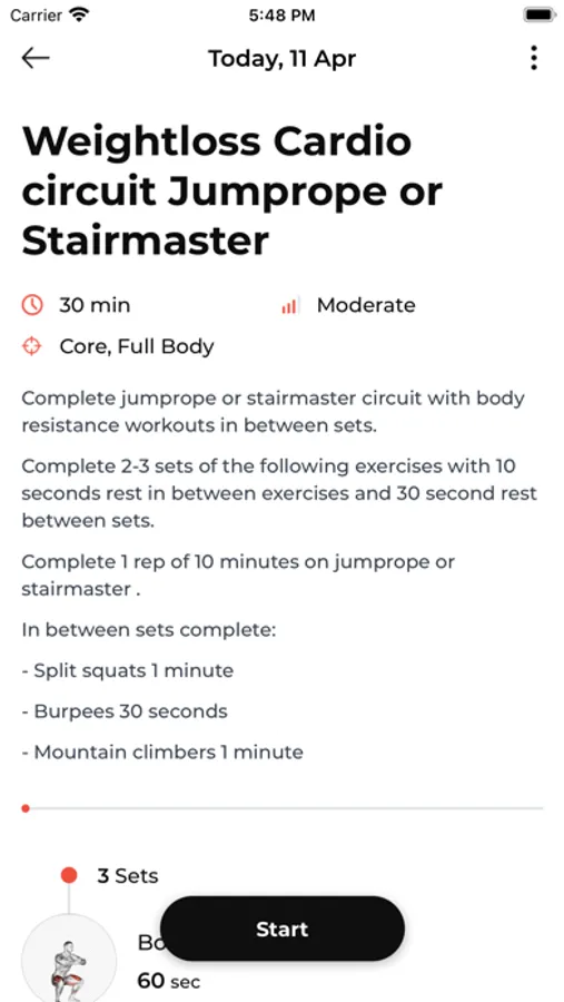 App also uses Apple Health to track energy burned and heart rate during a workout session, if an Apple Watch is used.