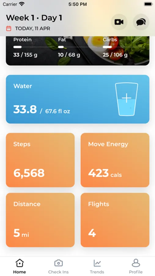 The app integrates with Apple Health to show your daily activity - distance, steps, active energy, and flights to help you better achieve your goals.