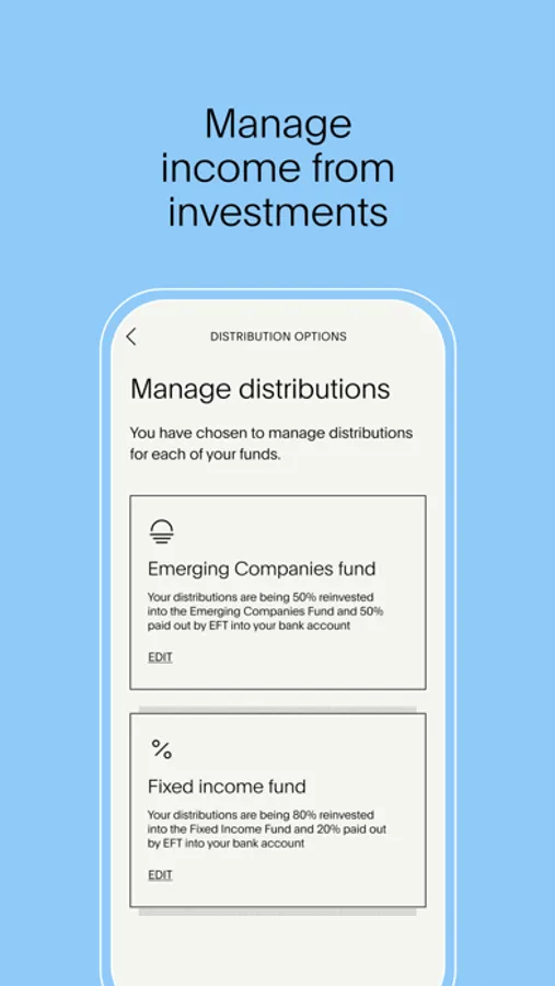 - Manage distribution rules for your fund e.g. re-invest funds, or payout in cash to your nominated bank account