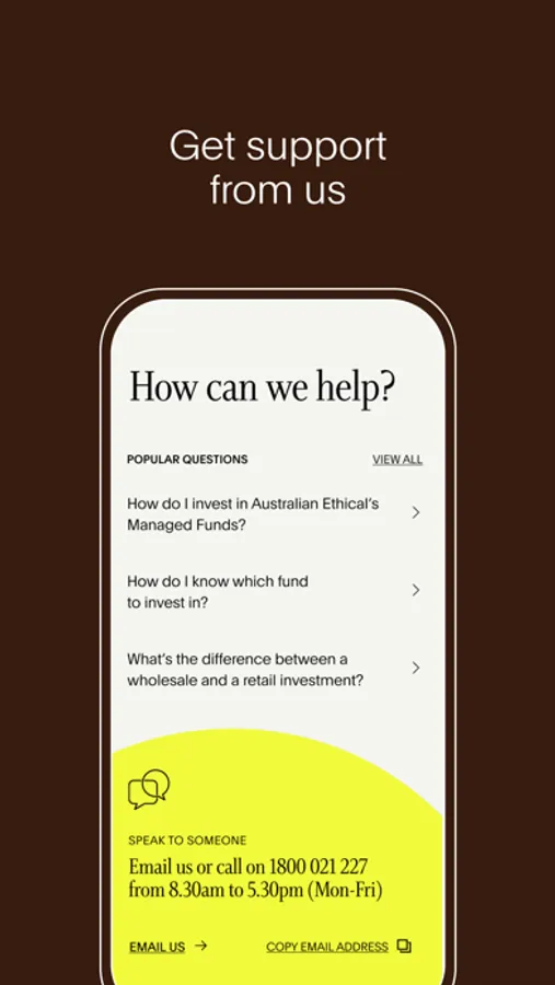 You will need to be an existing Australian Ethical investor to use the app. You will need your InvestorServe account details to login. If you don’t have an account or have forgotten your details, you can get these within the app.