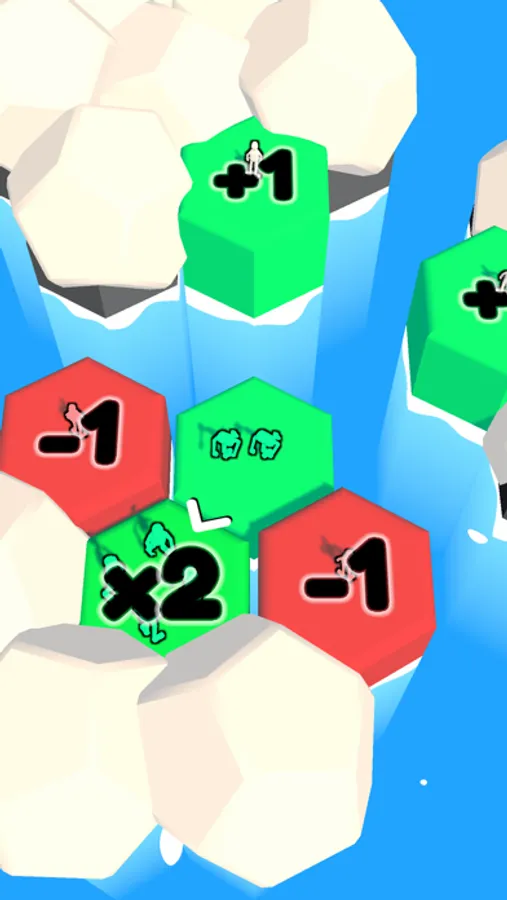 Green hexagons contain friends. Either add or multiply to increase your numbers, adding more Hexagoons to your party.