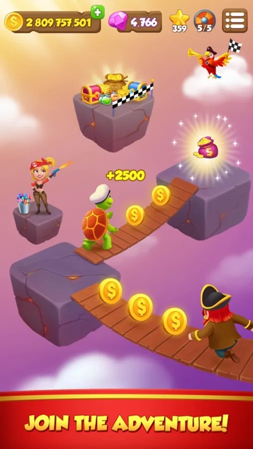 Are you brave to defeat pirate attacks, to master island challenges, or to steal coins from other pirate kings? Play any role you like as island king. Become a master of coin who holds billions of coins and rule the realm!