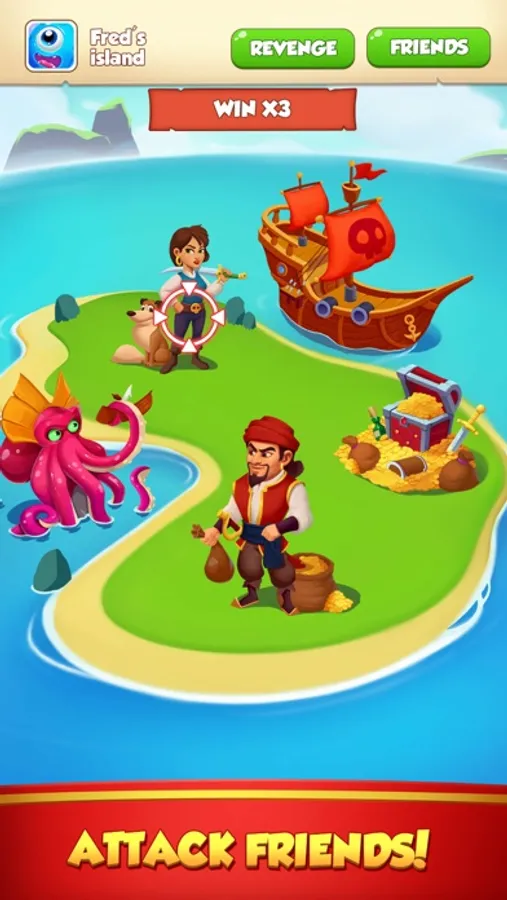 Attack or raid friends and other players from around the world to get enough treasure to build your villages and islands. Take revenge on those who have attacked your islands! You never know what treasure you can find in someone else's villages and islands!