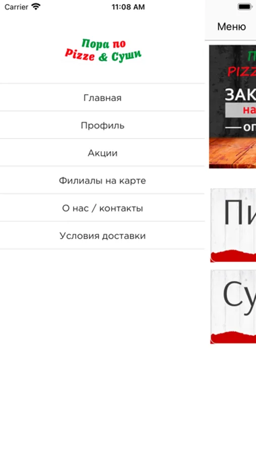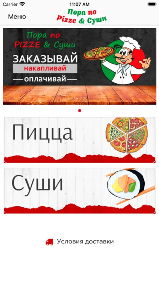 Приложение 'Пора по pizze и суши' - Это: