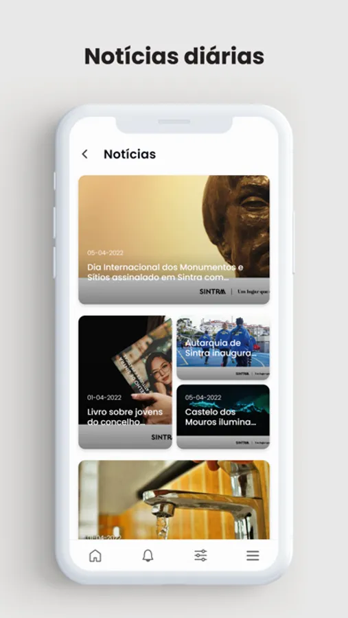 Application that aims to promote news and events, spread of information and tourist and cultural promotion of the municipality of Sintra. The group of features will soon be available and the municipality will be able to communicate and receive direct feedback from the citizens, by providing some services.