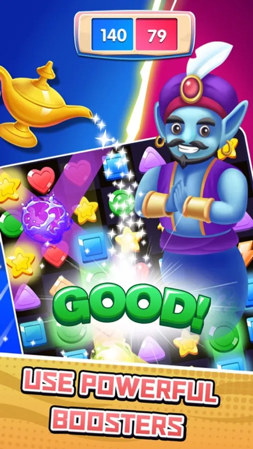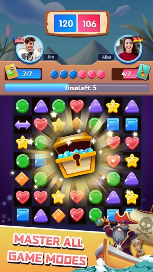 In Match Puzzle, players take turns playing against each other on the same match-3 board, so they have to consider not only how many points their moves will get, but also whether he will create chances for their opponents!