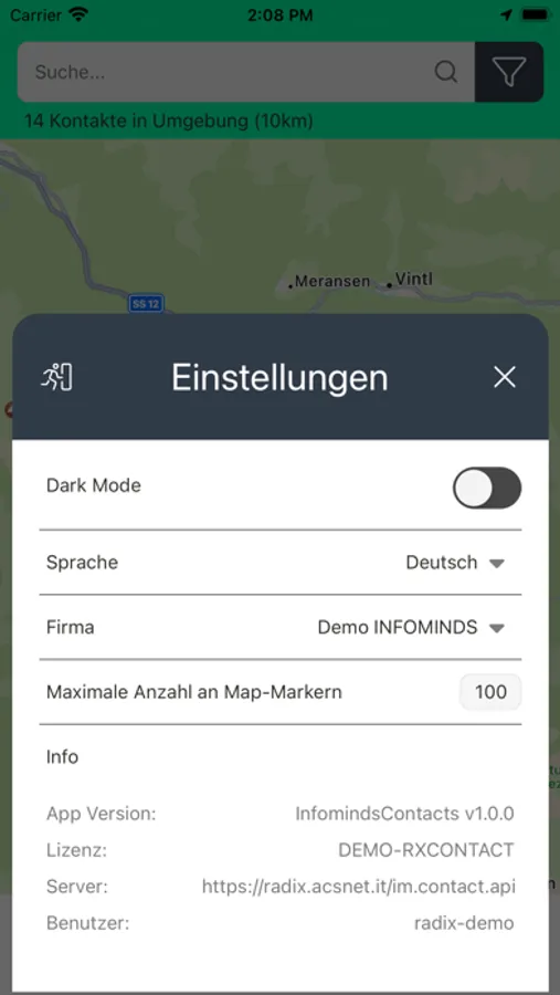 Mit der Infominds Contacts App können alle in RADIX/Ergo gespeicherten Kontakte auf einem mobilen Gerät aufgerufen werden.
