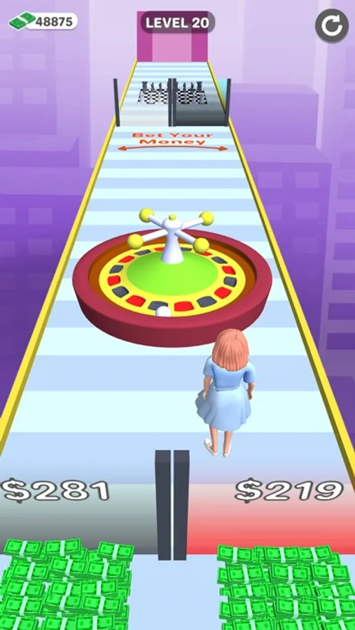 This run for billionaire life game is far beyond just collecting money and being a healthy runner destiny fortunate run life girl as it contains loads of fun choices and mini games for you to enjoy and make you more rich. You can select the right gates and test your luck while running for money. All you have to do is get to the end of the track, avoid obstacles, and try to collect as many money bills as possible along the way in money runner games!