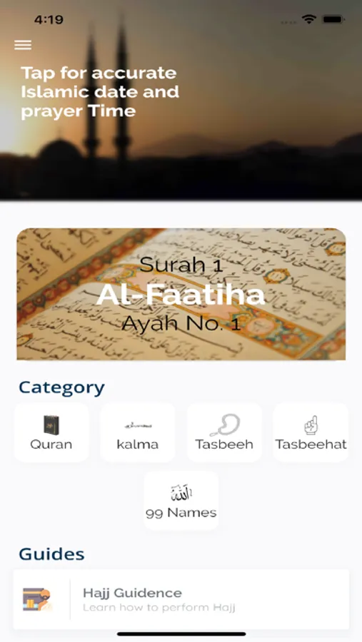 This Islamic App contains everything a Muslim need, starting from prayer times, the holy Quran with English translation and categorized by surahs and by Parah. Application also includes the direction of Qibla, the Hijri and Gregorian calendar, Guidance regarding 5 main pillars of Islam Namaz, Roza, Hajj and Zakat. Moreover, this application also contains an online tasbih, 99 Names of Allah and live streaming of Makkah TV.