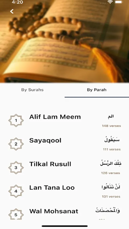 For reading and listening audio (mp3) +English translation +Transliteration and is categorized by parahs and surahs.