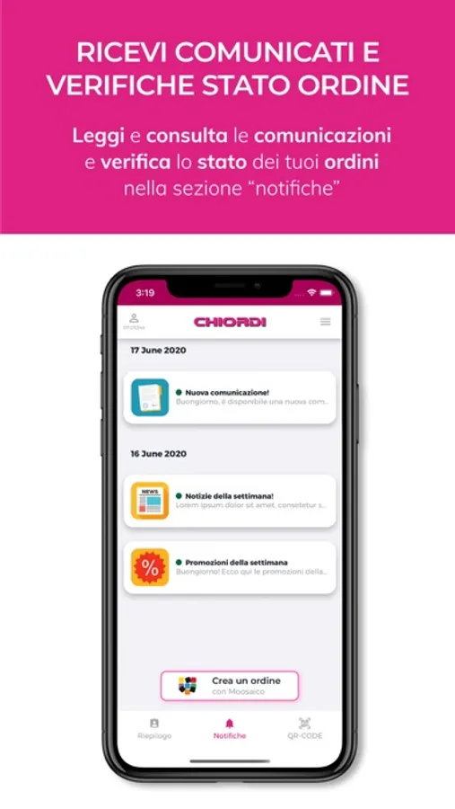 Grazie alle sue funzionalità potrai avere il tuo QR code personale, ricevere notifiche di comunicati e visualizzare lo stato dei tuoi ordini.
