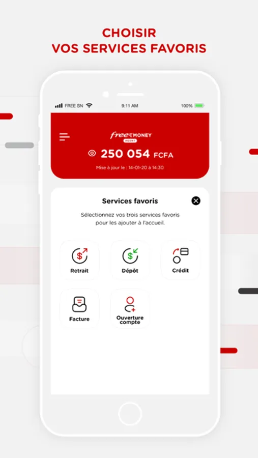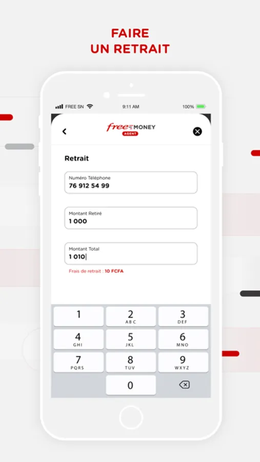 Free Agent offre les fonctionnalités agent du marché Mobile et Mobile Money en permettant les transactions suivantes: