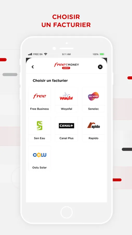 - Paiement de factures ( eau, électricité, canal+, rapido, téléphone etc.)