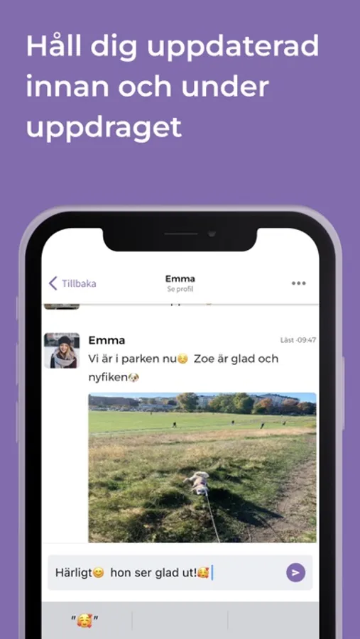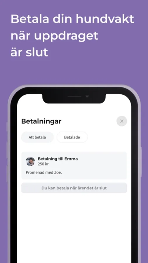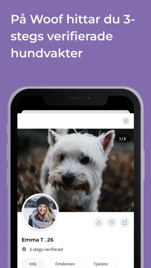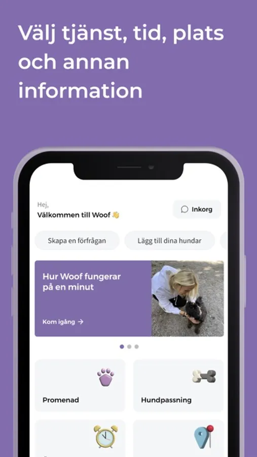 Genom Woof kan du söka, boka och kommunicera direkt med hundvakten i appen. Glöm bort besväret med telefonnummer och osäkra möten - Woof håller allt samlat på ett och samma ställe.