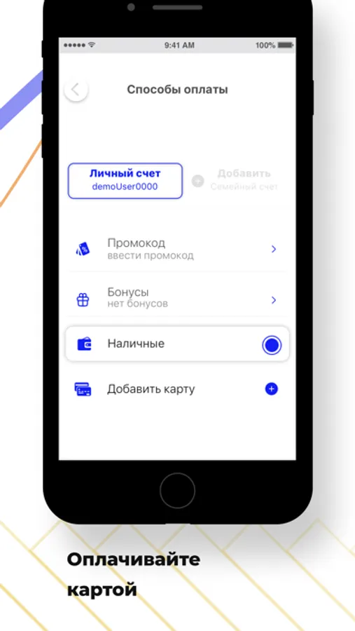 Быстрая и безопасная оплата. Чтобы добавить карту, внесите её данные в приложение. QR-код для оплаты любым банковским приложением будет доступен в конце поездки у водителя.