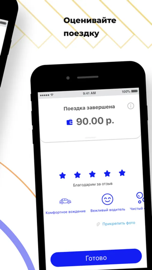 Оценивайте поездку с помощью готовых шаблонов, прикрепите фотографию к отзыву, посмотрите детализацию платежей после поездки.
