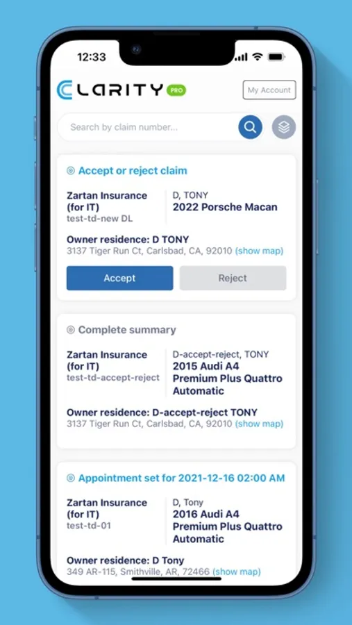 CLARITY Pro is a companion app to ACD’S CLARITY desktop application. It’s designed to help appraisers organize their day and more easily and effectively manage their claims. Communication, vehicle photos/uploads & status updates can be done straight from the field.