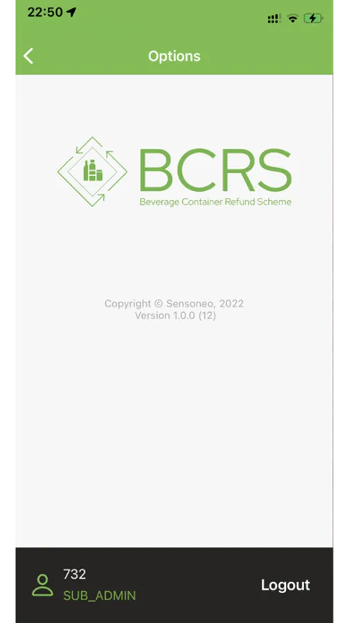 Application serves for beverage container validation through reading of particular product EAN code and confirming or denying scanned beverage container for further processing.