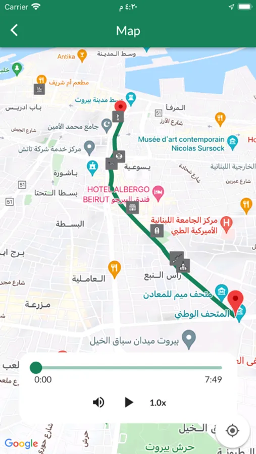 The app will give you the opportunity to combine a nice walk in Beirut with learning about a previous part of Lebanese history, although this was a dark period. The app displays a map with routes to choose from. You can use it both online or offline while walking or surf on the map while at home.