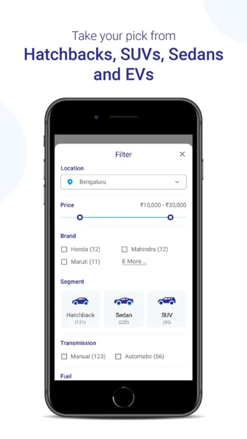 Browse through our collection of SUVs, Sedans and Hatchbacks, and pick your dream car from the wide range of brands, models and colours.