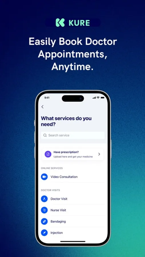 Download Kure for FREE now. And enjoy a new form of healthcare. Easier, faster, and one hundred percent more convenient.