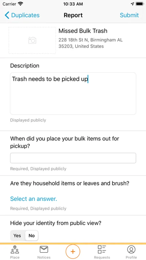 Birmingham’s mobile 311 App was created to help residents quickly report non-emergency issues such as street maintenance, garbage or recycling problems, street light request, potholes, damaged street signs as well as damaged trees and roads. The app uses GPS to recognize the user’s current location and provides a menu of common-quality-of- life conditions to select from. Users will have the opportunity to upload pictures or videos to accompany requests and use the app to track the status of reports. Residents can also track the status of reports that other community members have submitted and learn when they have been resolved. The MY BHAM 311 app makes reporting local problems in our city more efficient. If you have questions regarding municipal services, please get in touch with our 311 call center by dialing 205-254-2489, connect with us online at www.birminghamal.gov/311 or email us at 311@birminghamal.gov.