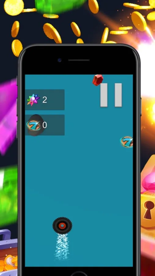 At each start of the game, a scale of starting acceleration appears in front of you, which you can set by stopping the arrow over the desired acceleration. The tire always goes up, but you can dodge obstacles by swiping left or right. Good luck!