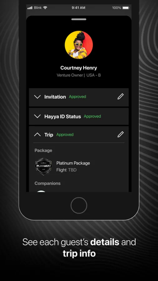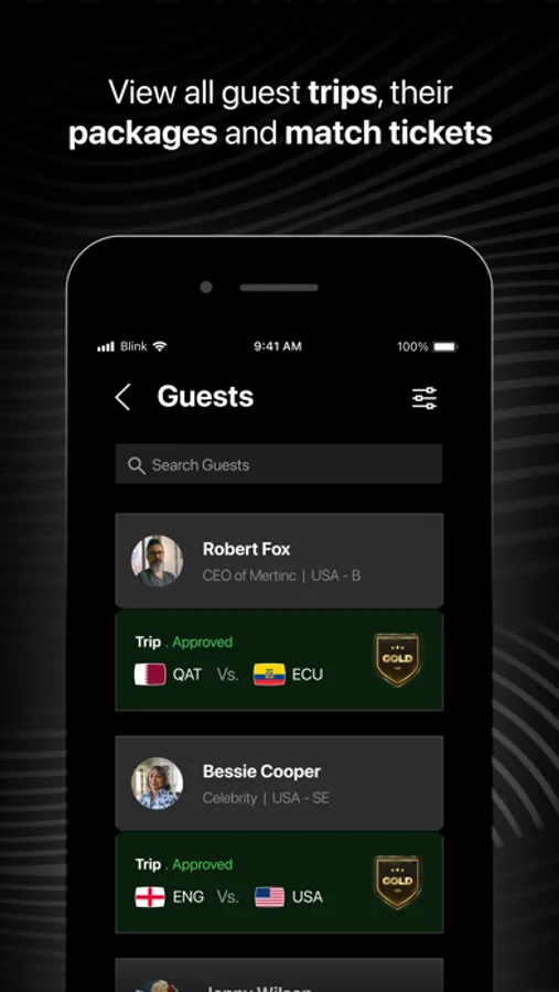 With the blink app, you can suggest and invite new guests to your event and assign them trip details.
