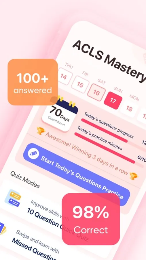 ACLS Practice Test 2023 is an exam preparation app that helps you pass the Advanced Cardiovascular Life Support (ACLS) certification exam with a high score on the first attempt.