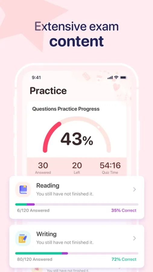 - Specialized exercises by content area, with the flexibility to switch at any time
