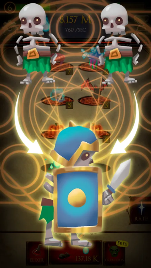 Merged creatures will give you souls and gold. Combine a slime with another slime to invoke a skeleton and earn even more souls!