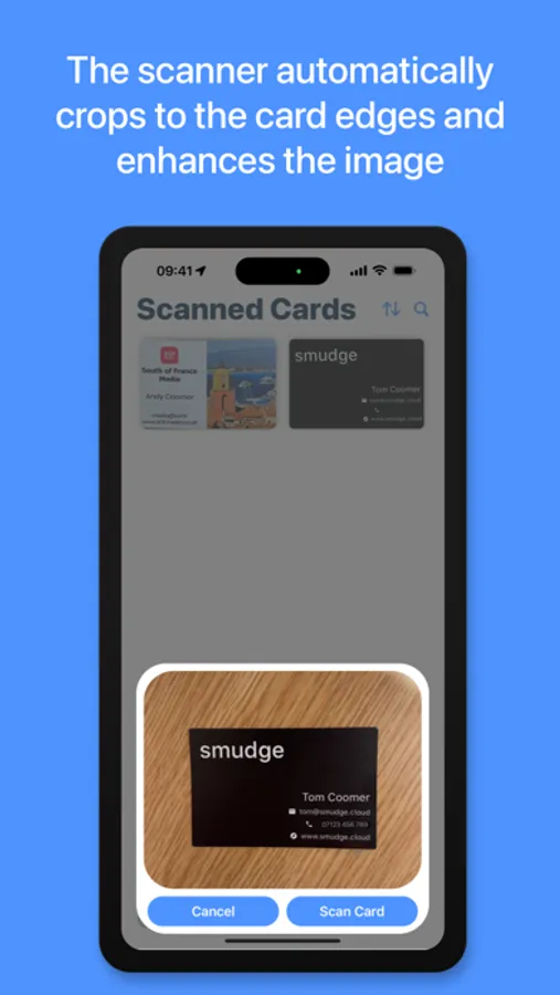 Business Card Scan automatically saves any cards that are added and data that is entered on your device for quick and offline access. The cards and their information is also synced through iCloud so you can access this information on your other Apple Devices.