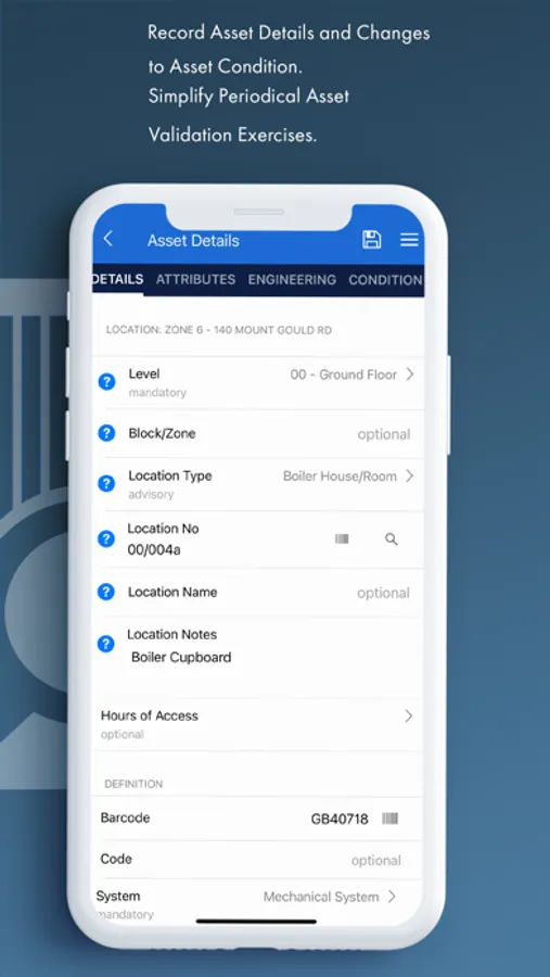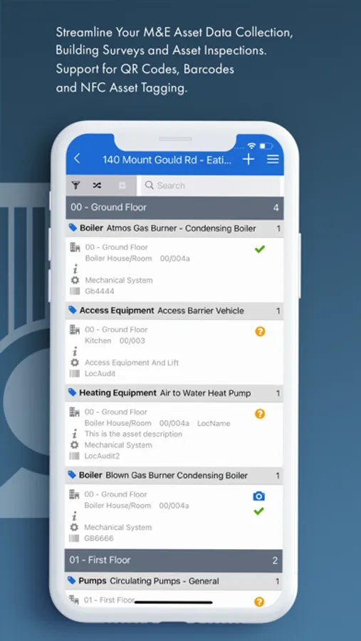 • Tagging and Coding: Support for industry standard 1D + 2D barcodes (e.g. QR codes) and NFC tagging enables quick and consistent identification of assets in line with industry/organisational best practise.