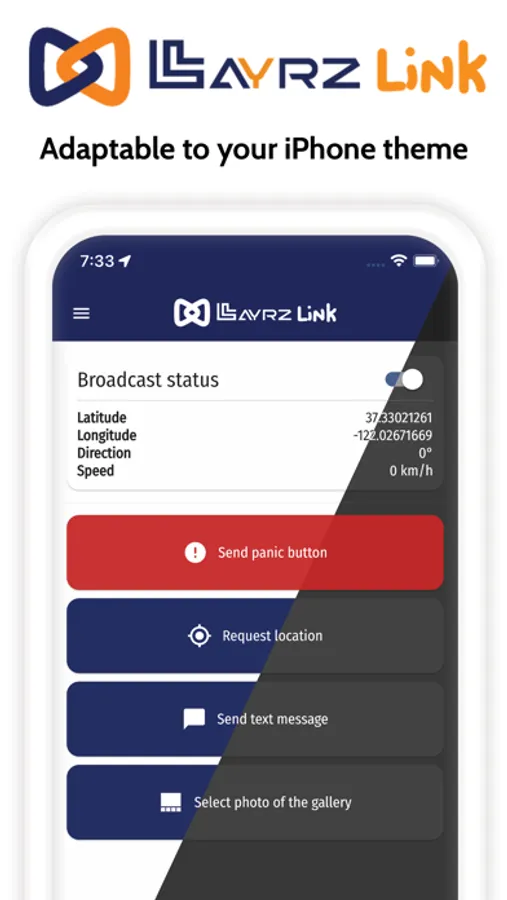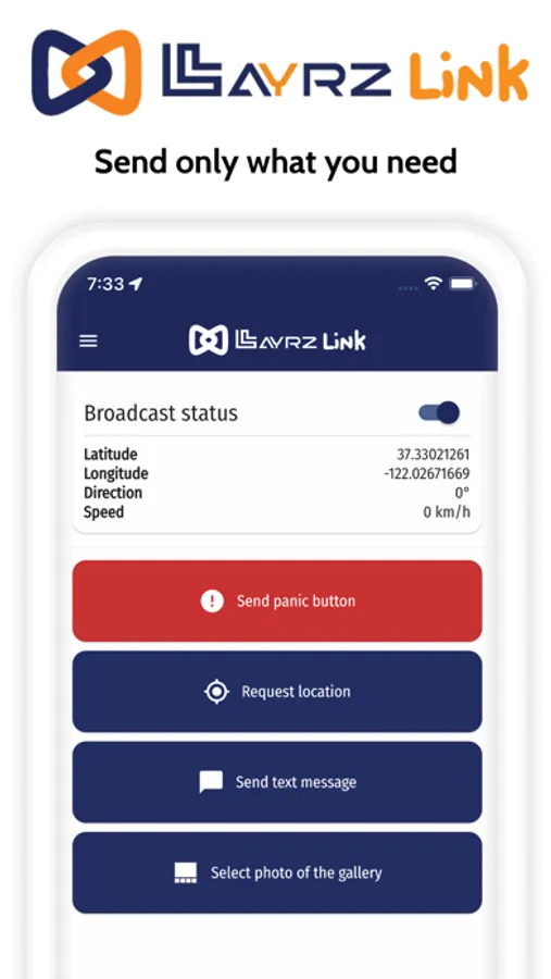Send images, scan QR codes, send a panic alarm and send your location to your Layrz account.