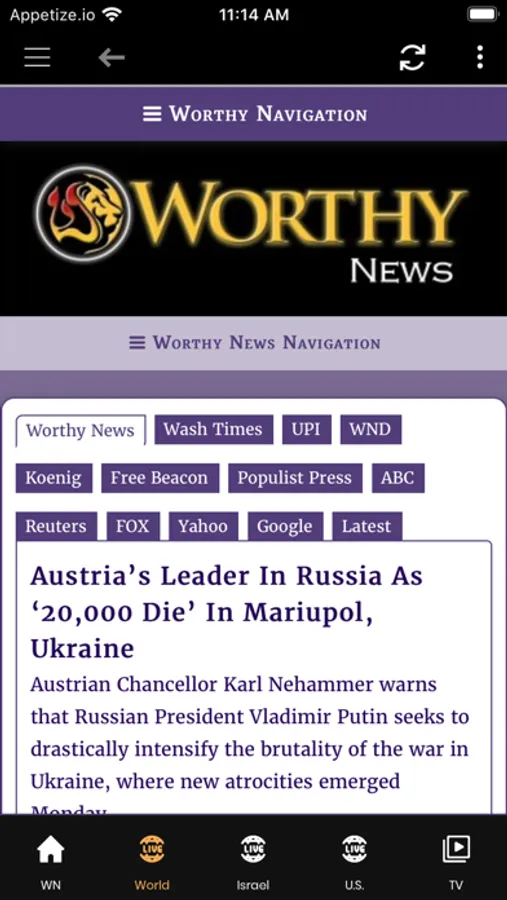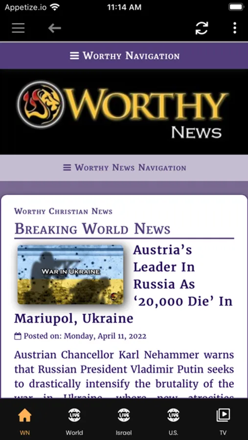 Worthy Ministries' app delivers up-to-date, free, and easy access to Worthy.TV and our news service.