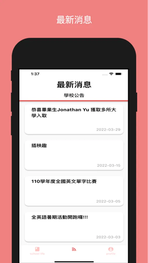 顯示學校生活、提供最新消息、親師聯絡等等功能