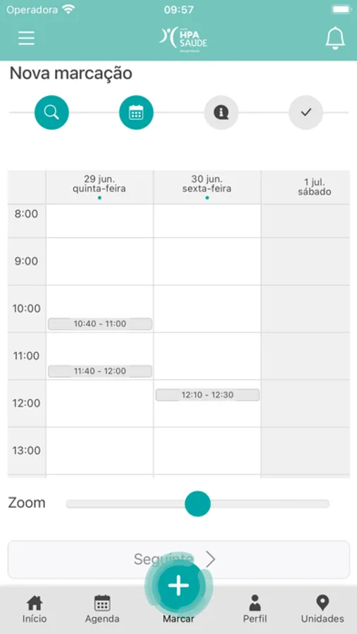 Nesta área pode efetuar o pedido de consulta, indicando a unidade e o(a) médico(a) pretendido.