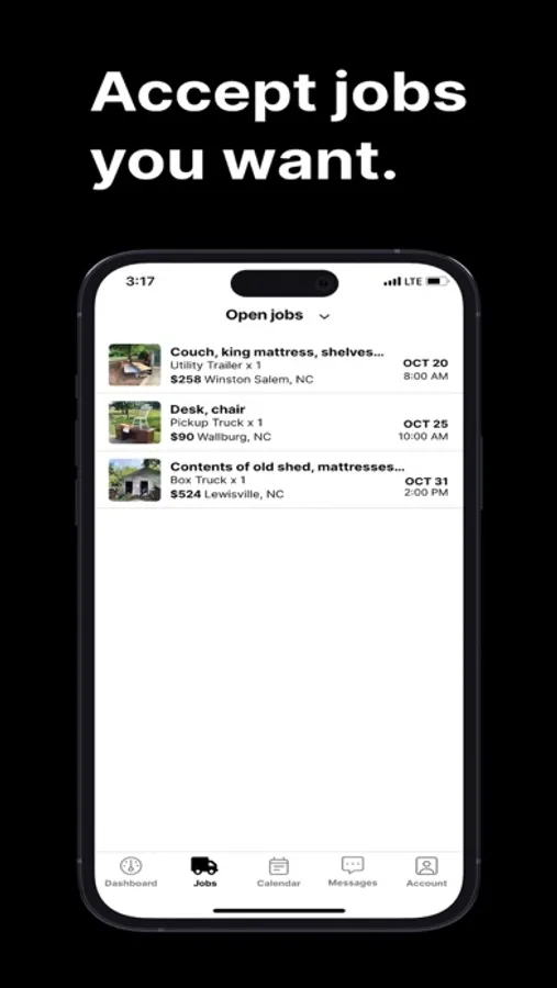 After reviewing the details of the job, including pay, date, time, and number of loads, you can accept or reject it.