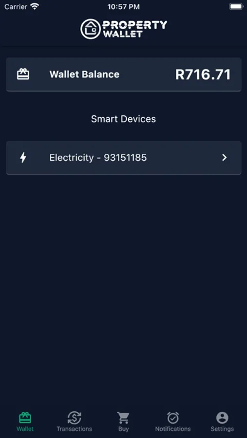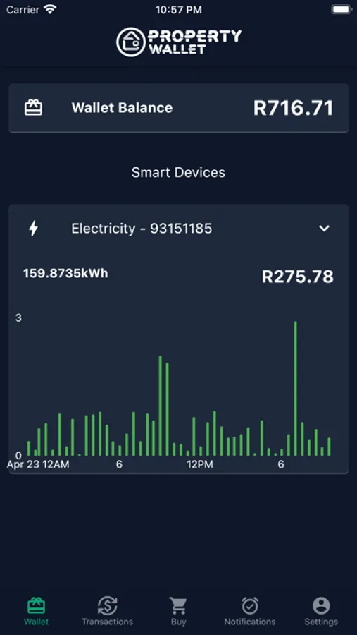 Property wallet allows you to monitor consumption for all your devices linked to your wallet. This includes but is not limited to electricity, water and gas meters. You can also top up your property wallet and get balance notifications and view past transactions from within the mobile app