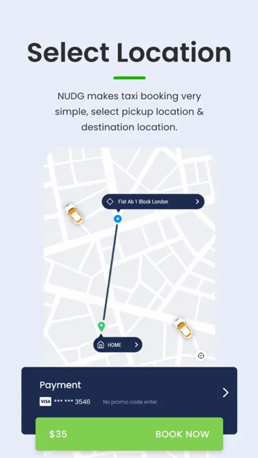 Swift Bookings: With NUDG, booking a taxi is a breeze. Get a ride now or pre-plan your travels by scheduling a pick-up for later, all at your fingertips.