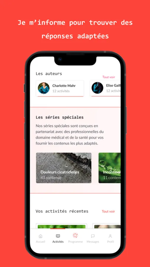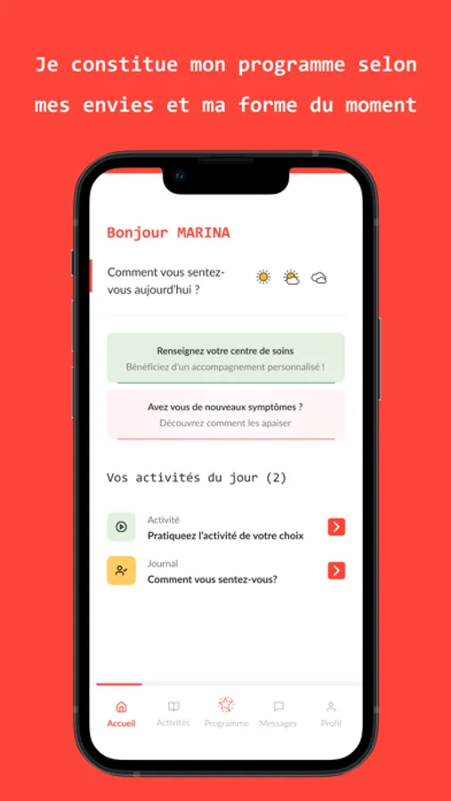 Parmi les activités proposées, vous trouverez des exercices de détente et de respiration pour soulager les émotions comme l’anxiété et le stress, mais aussi des exercices de mobilisation corporelles et d’autohypnose pour soulager les douleurs comme les raideurs articulaires que peuvent engendrer les traitements.