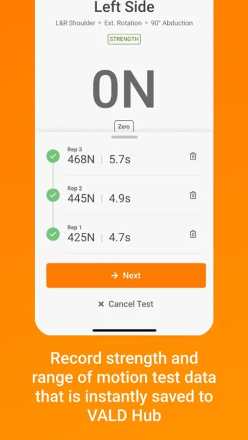 Save time on recording test notes with results that are automatically uploaded to VALD Hub and saved against a client profile.