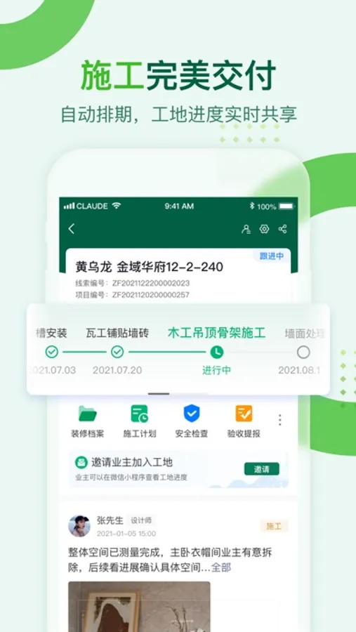 东易天眼APP是东易日盛推出的智能工程管控系统,覆盖装企营销获客、客户转化、施工交付、供应链协同和业主服务五个实际业务场景,打通家装业务全流程,帮助装企实现管理在线、客户在线、业务在线和服务在线,同时帮助装企更好的服务业主,提效降本