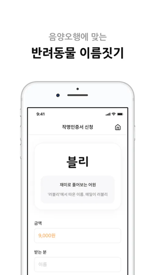 힐링마이펫은 네이밍 비전문가들도 전문가처럼 직접 이름 지어 내 사랑하는 반려동물의 이름을 부를 수 있도록 제작되었습니다.