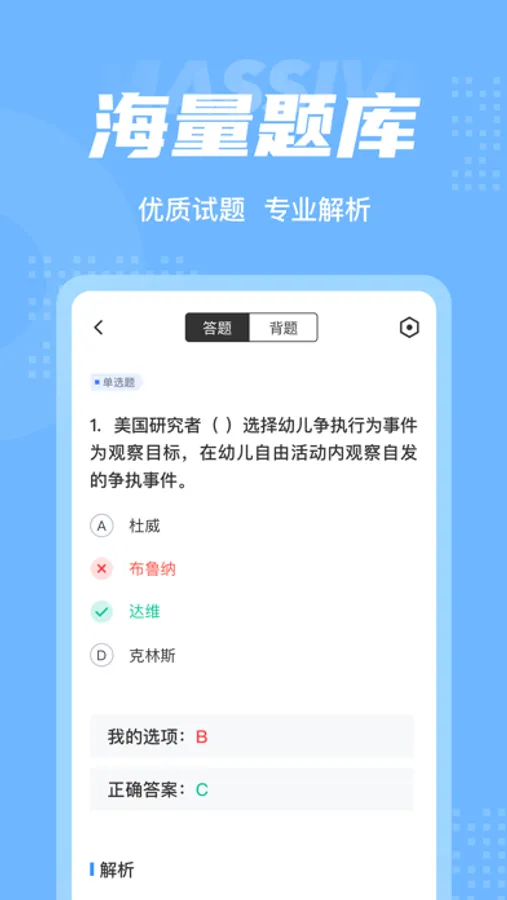 儿童发展测评师题库新增搜题功能,儿童发展测评师考试中的疑问一搜便知,更支持语音和拍照搜题。