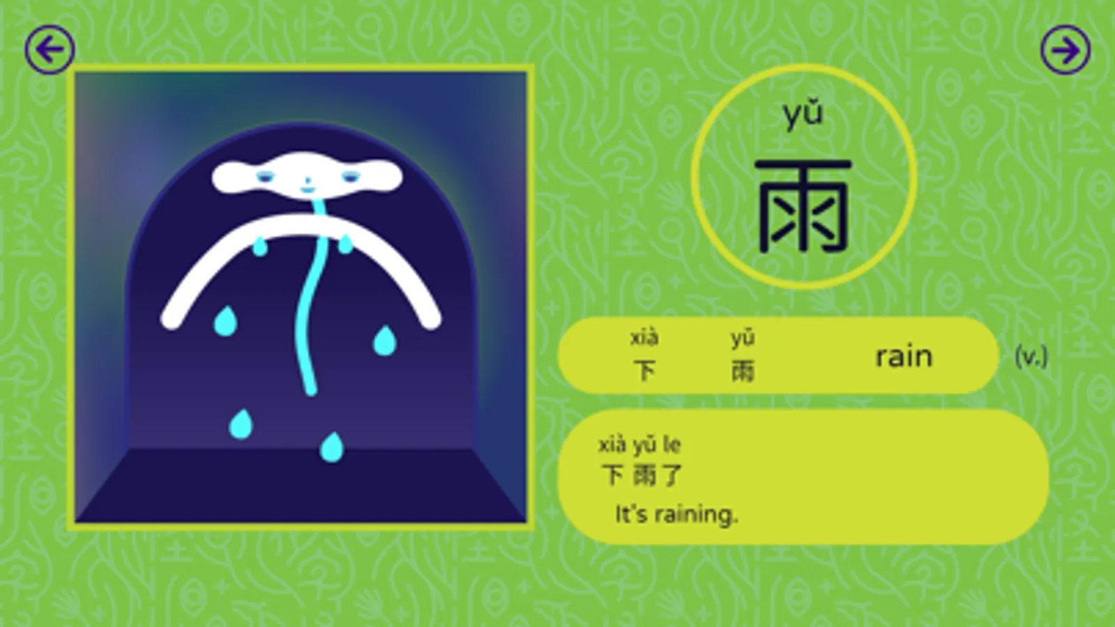 5. Writing strokes guidance: This helps user learn how to correctly write each Chinese character