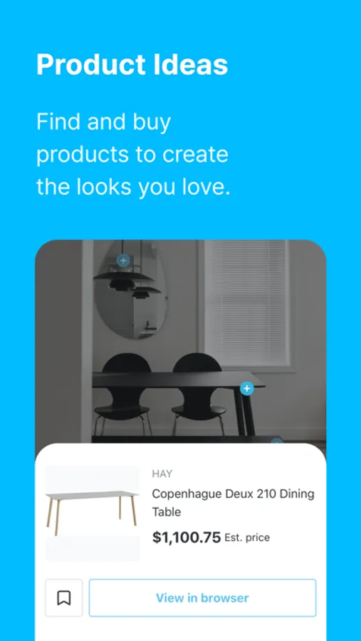 Get detailed information on products featured in photos, including prices and where to buy, simply by tapping on a product tag (+). Discover new products and easily shop for your favorite decor and furniture.