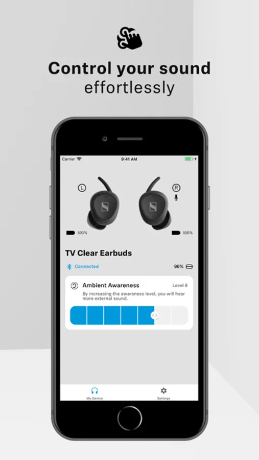 The Sennheiser True Wireless TV earbuds let you enjoy crystal-clear TV sound at the volume you choose. In addition to adjusting key settings such as your Speech Clarity mode and Ambient Awareness, the TV Clear app lets you take full advantage of everything earbuds have to offer.